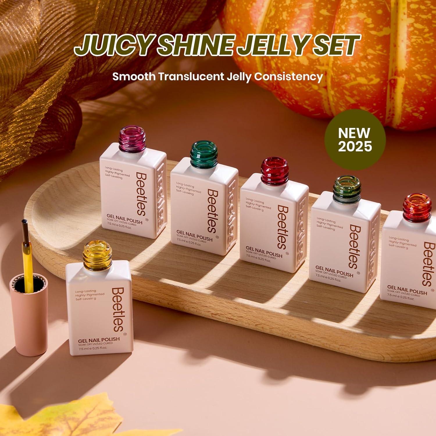 Beetles Vivid Noel Jelly Gel Nail Polish Set - 6 Colors Christmas Gel Polish Kit Pink Red Black Blue Green Purple Sheer Translucent Effect Soak Off UV DIY Home Salon Manicure Winter Gift for Women(0-0-Autumn Prism)