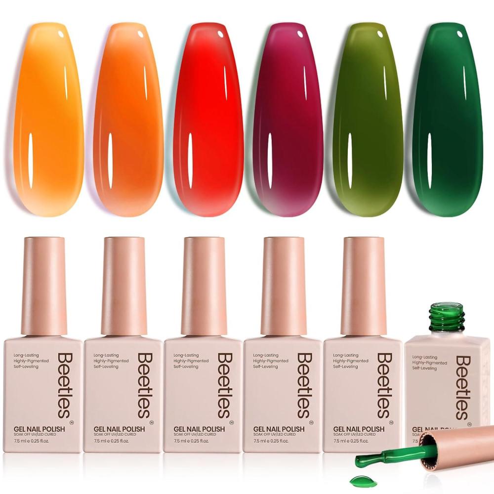 imageBeetles Vivid Noel Jelly Gel Nail Polish Set  6 Colors Christmas Gel Polish Kit Pink Red Black Blue Green Purple Sheer Translucent Effect Soak Off UV DIY Home Salon Manicure Winter Gift for Women00Autumn Prism