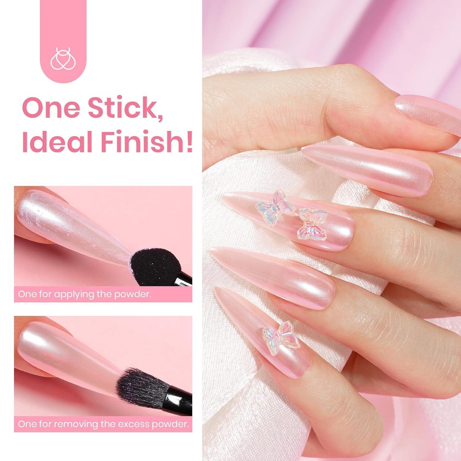 Beetles White Chrome Nail Powder for Gel Nails Pearl Cromer Nail Powder Mirror Effect Nails Gel Polish Glitter Manicure Holographic Pigment Nails Art Design Gifts for Women(0-0 Effortless Chic)