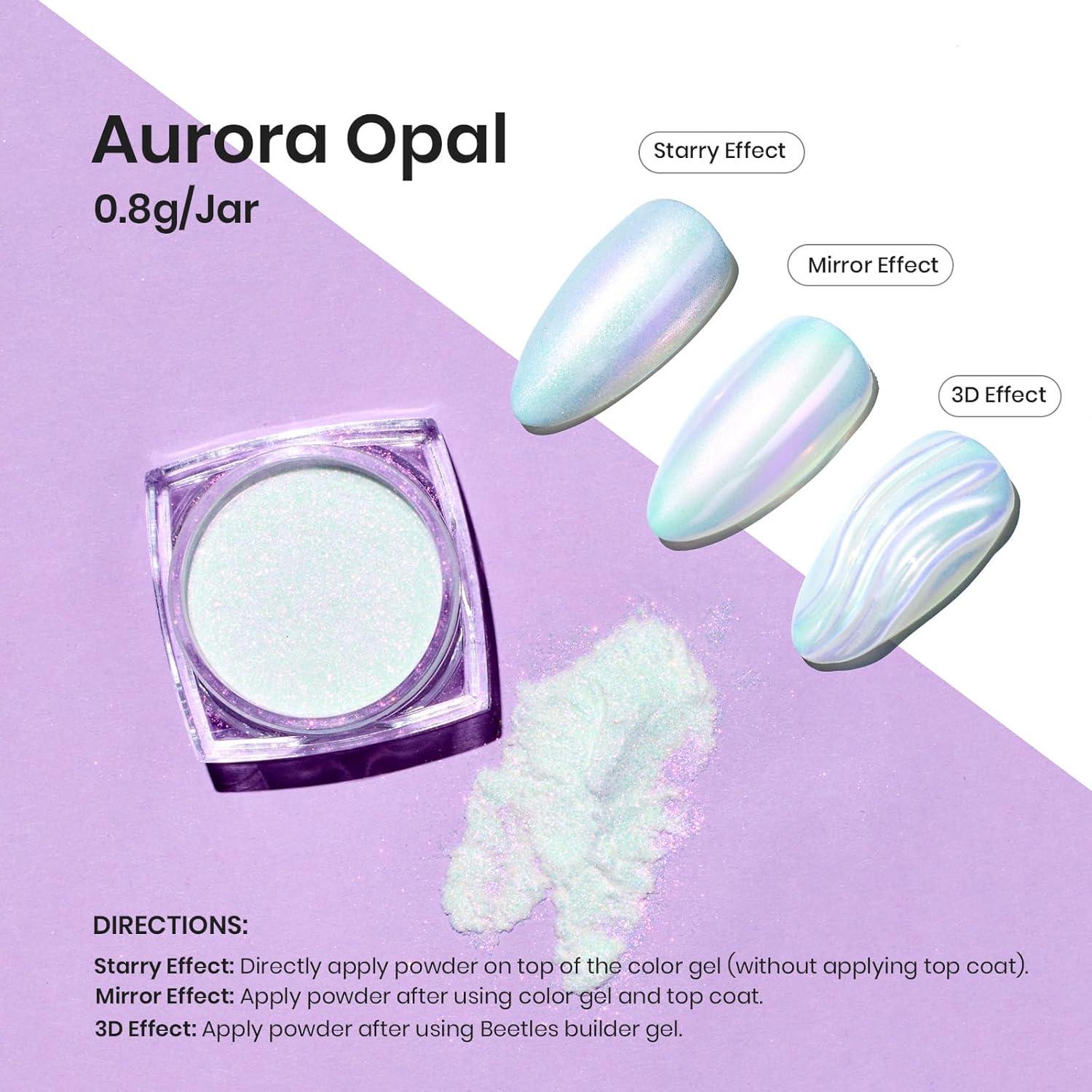 imageBeetles White Chrome Nail Powder for Gel Nails Pearl Cromer Nail Powder Mirror Effect Nails Gel Polish Glitter Manicure Holographic Pigment Nails Art Design Gifts for WomenA2Aurora Opal
