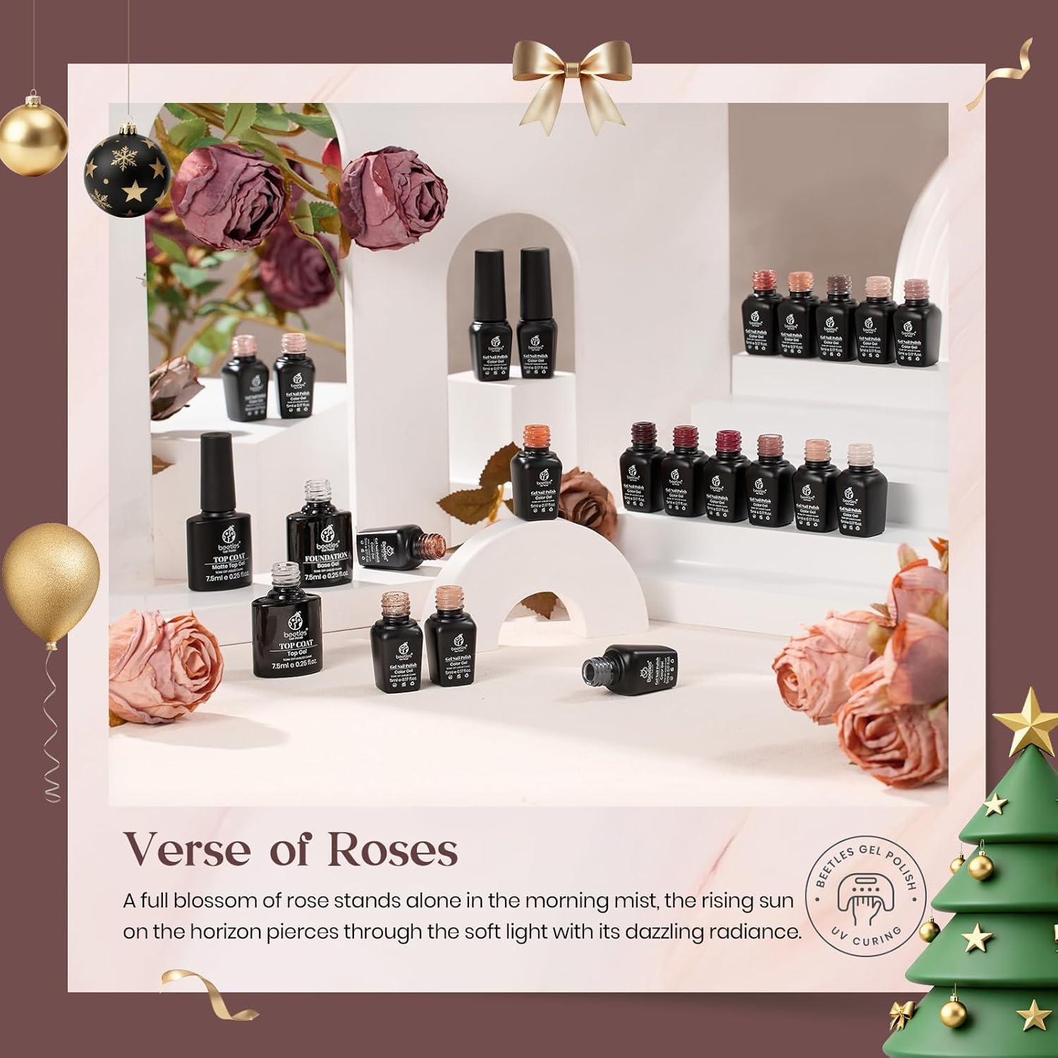 imageBeetles Winter Gel Nail Polish Colors Set  Amber Twilight 20 Colors 2025 Yellow Orange Red Cat Eye Brown Green Soak Off Uv Manicure Kit With Base Glossy Matte Top Coat Gift for Women00 20 Colors Verse of Roses