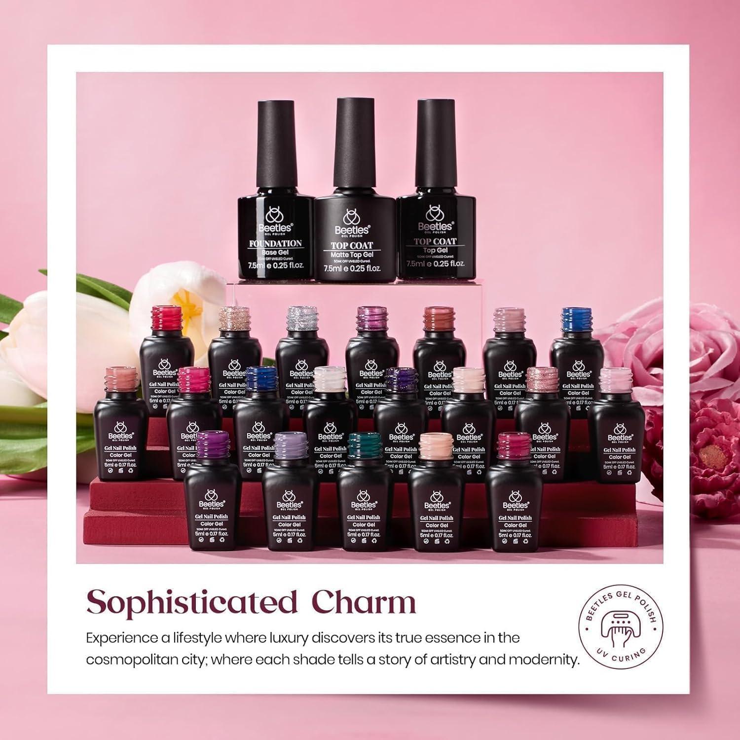 All-in-One Gel Nail Kit: Get everything you need for salon-quality manicures at home! The Beetles gel polish set includes 36 mini gel colors (5ml each) and 4 no-wipe base and top coats (glossy ,Glitter and matte, 7.5ml each).Plus, essential tools: nail buffer, file, clippers, cuticle stick, and a step-by-step manual.