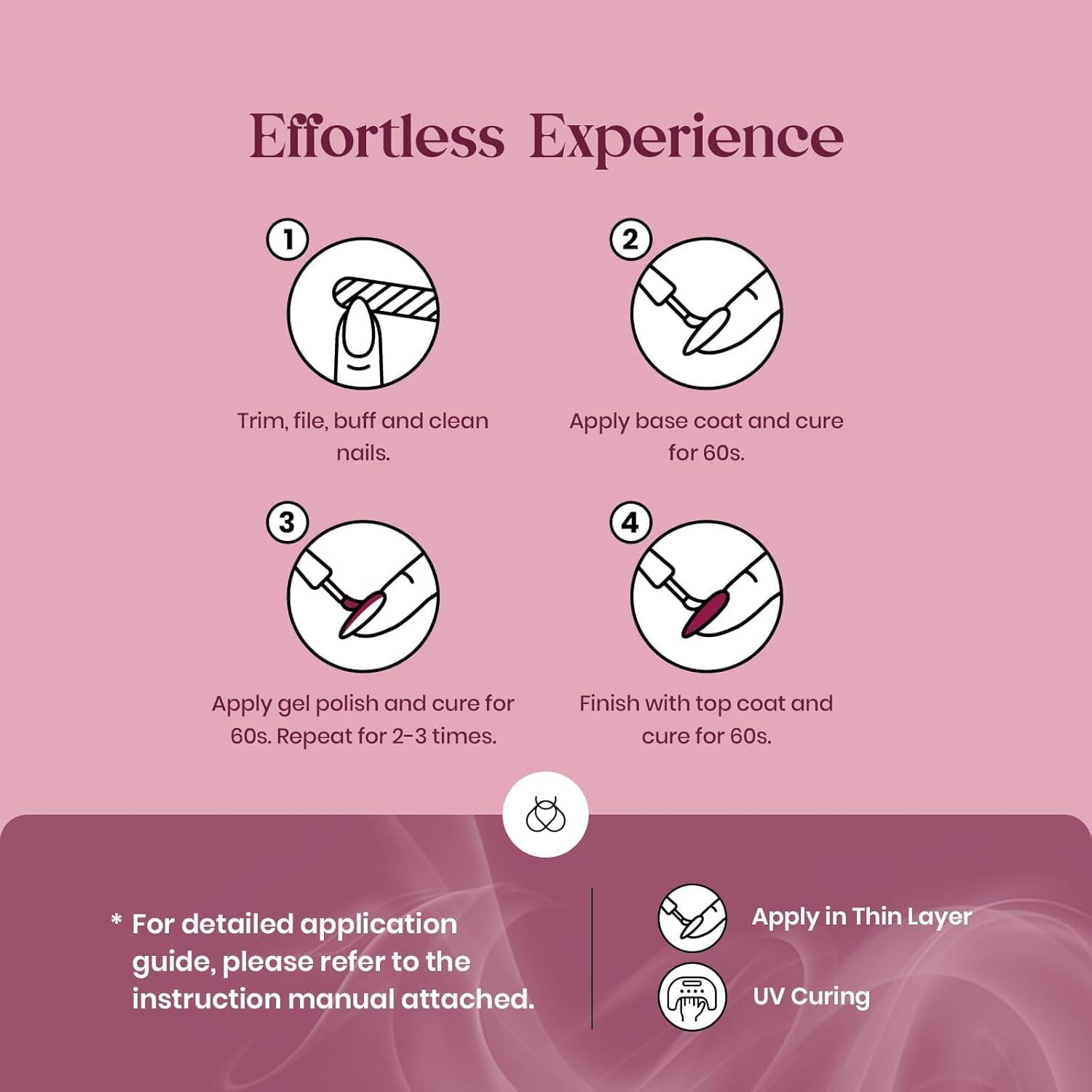High Shine & Long-Lasting Wear:Enjoy richly pigmented colors that deliver full coverage in thin layers. With proper application and UV/LED curing, your nails stay glossy, chip-free, and vibrant for up to 28+ days.