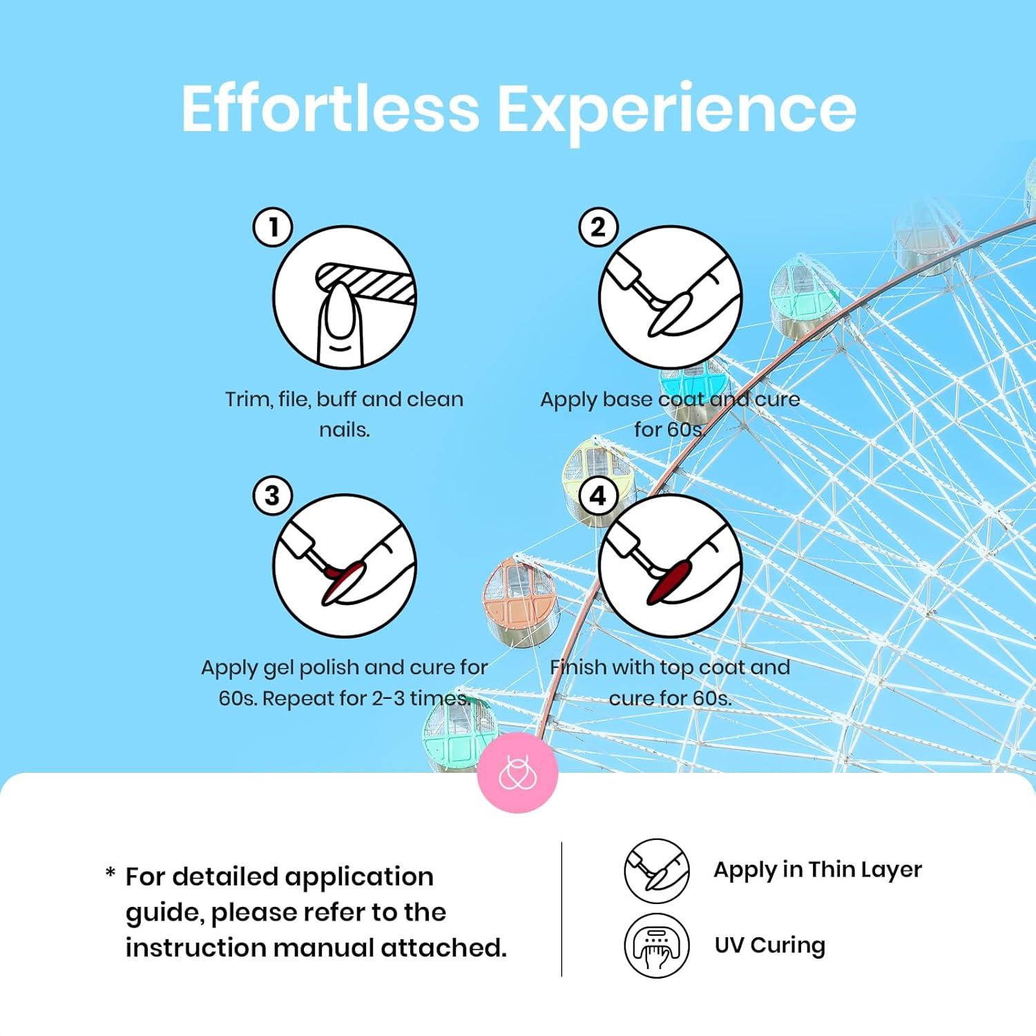 High Shine & Long-Lasting Wear:Enjoy richly pigmented colors that deliver full coverage in thin layers. With proper application and UV/LED curing, your nails stay glossy, chip-free, and vibrant for up to 28+ days.