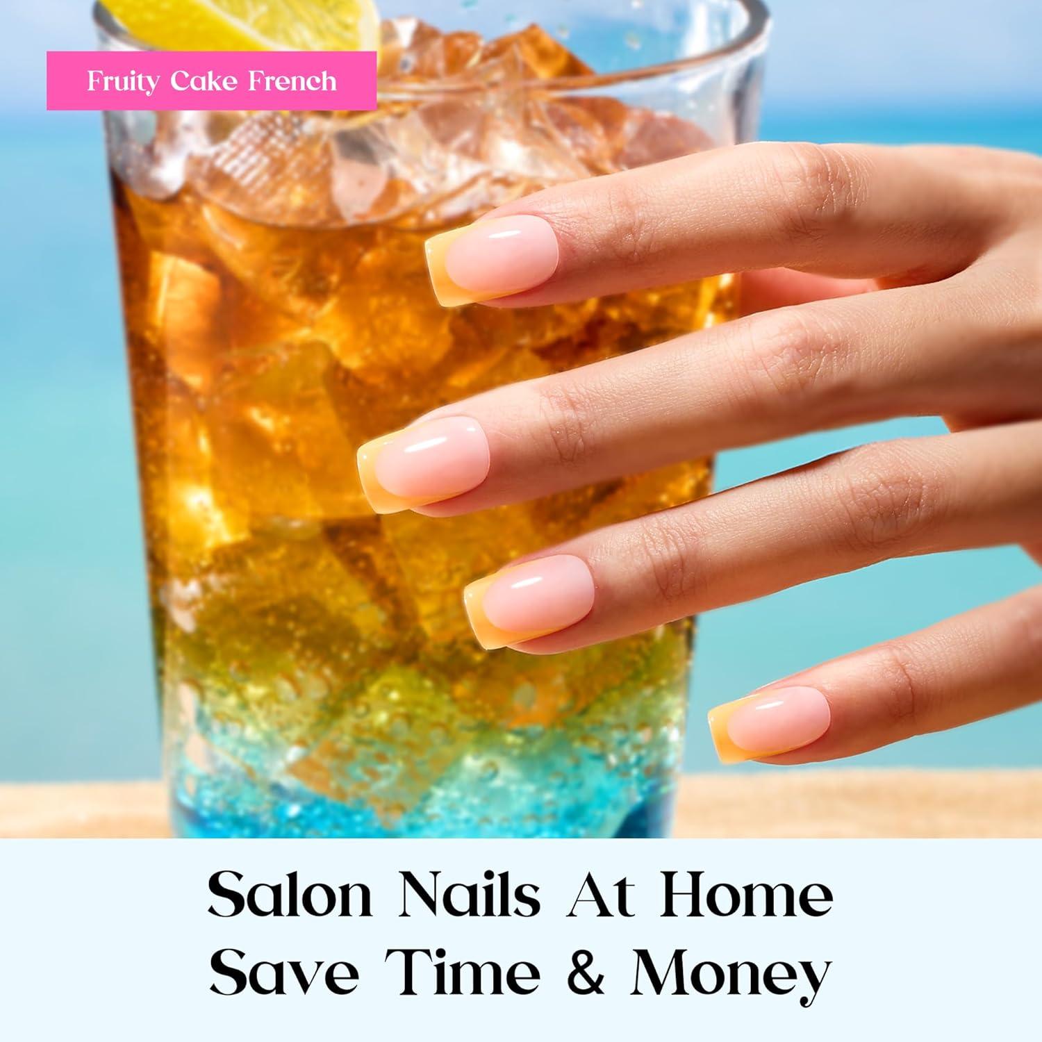 imageBeetles X Press French Tip Toenails  Charm French  Glossy Pink Short Square Press On Toe Nails  150 Pcs 15 Sizes Natural Salon Quality Gel Nail Tips For Women08S SquareSummer Fruity Cake French