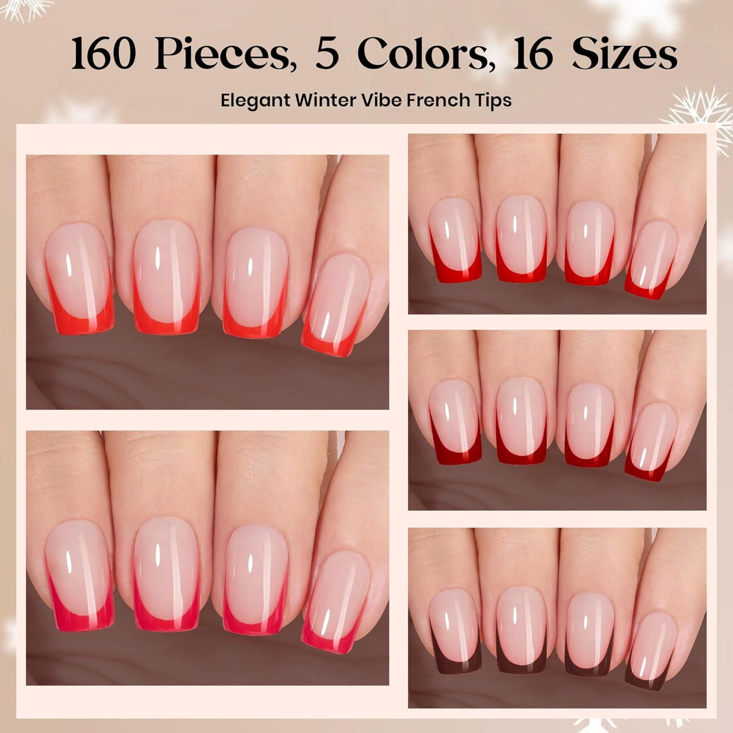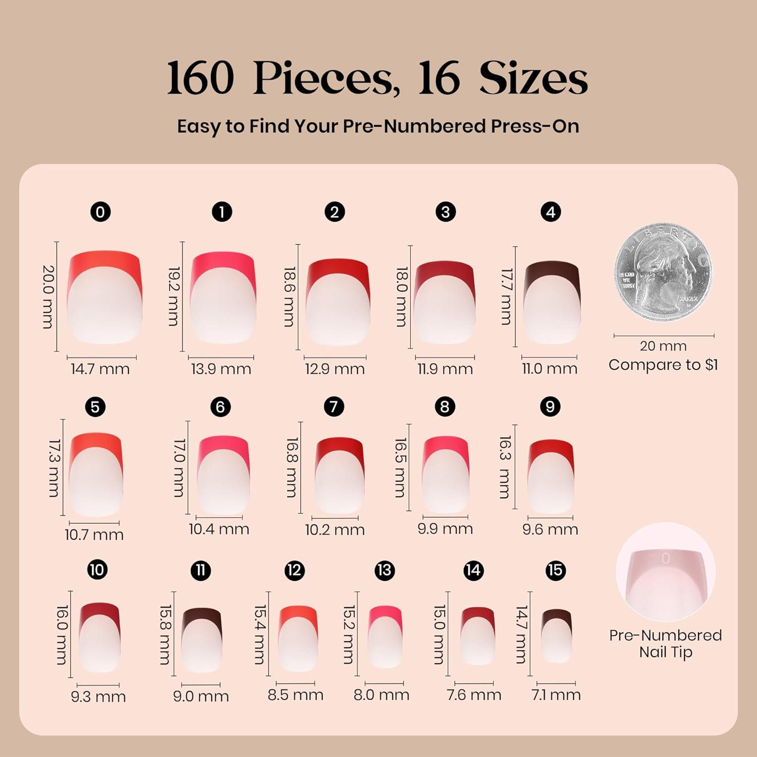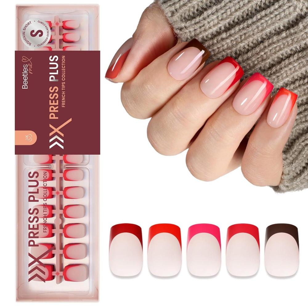 imageBeetles X Press French Tip Toenails  Charm French  Glossy Pink Short Square Press On Toe Nails  150 Pcs 15 Sizes Natural Salon Quality Gel Nail Tips For Women2S SquareCrimson French