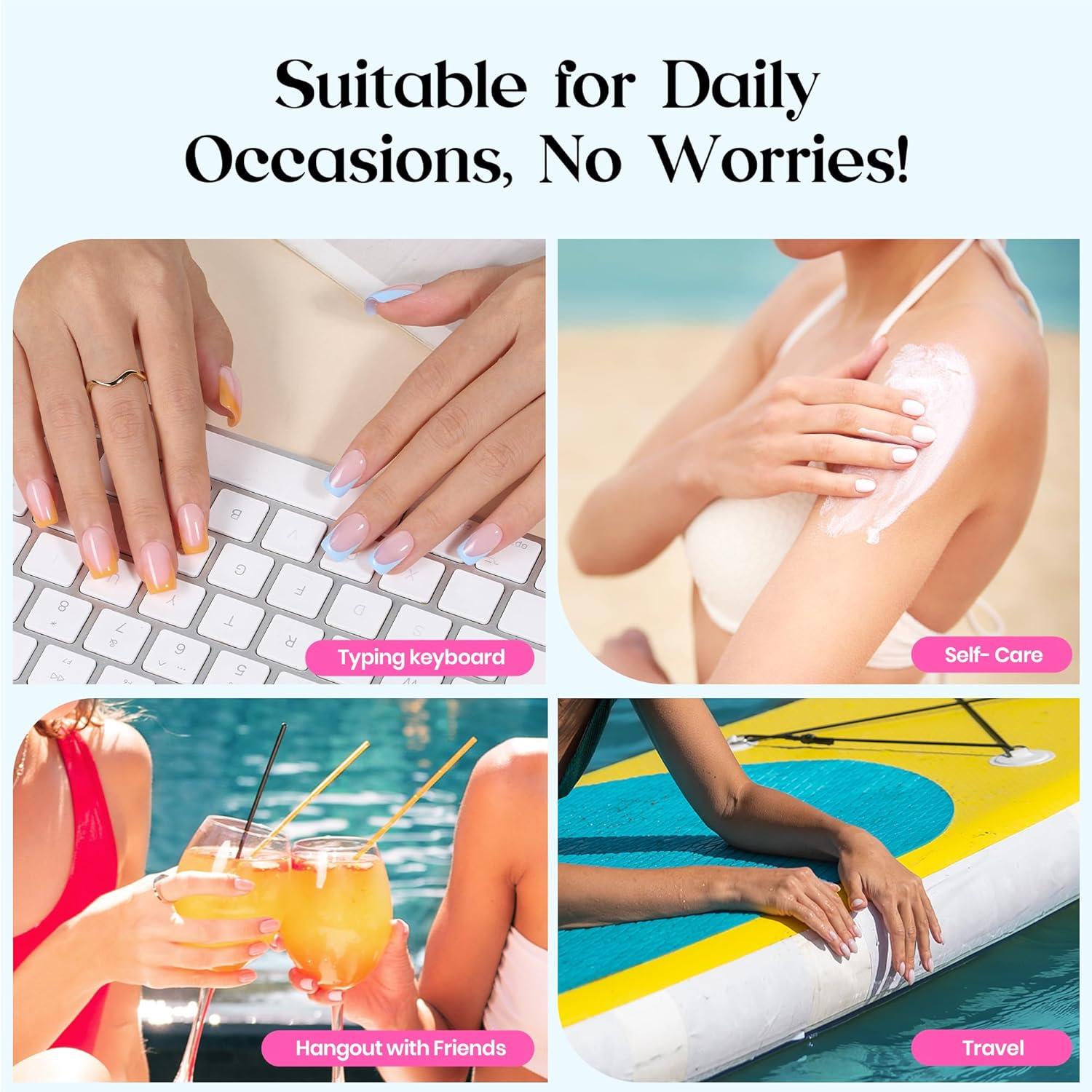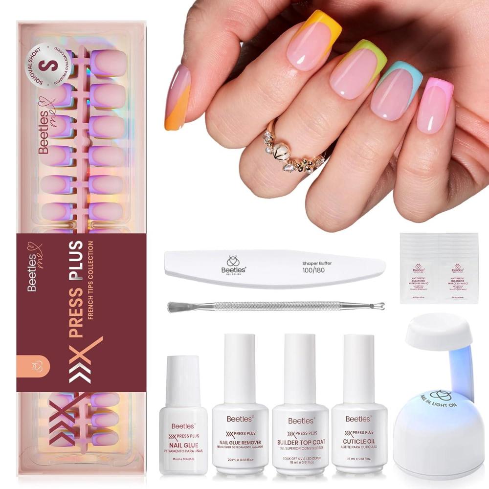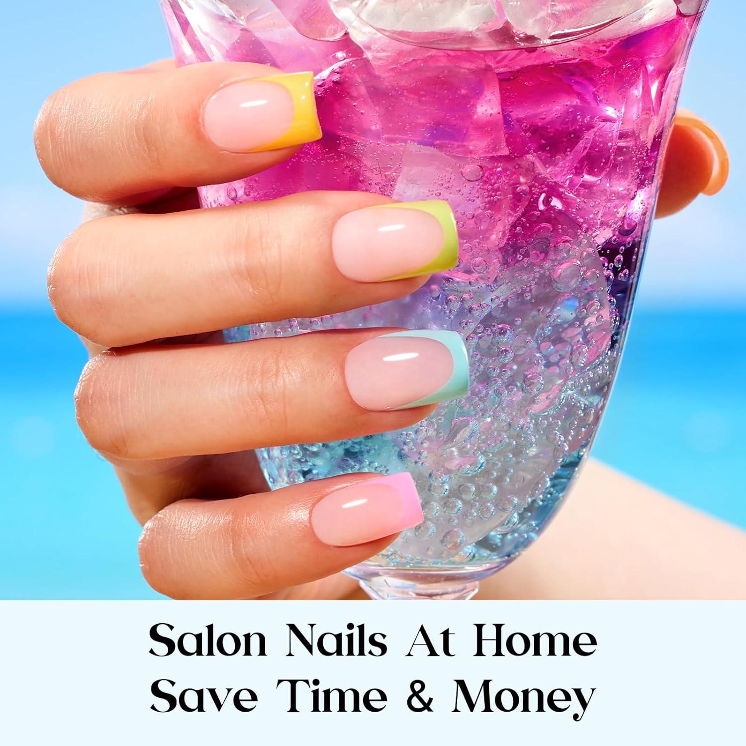 imageBeetles X Press French Tip Toenails  Charm French  Glossy Pink Short Square Press On Toe Nails  150 Pcs 15 Sizes Natural Salon Quality Gel Nail Tips For Women3S SquareFruity Soda French Kit