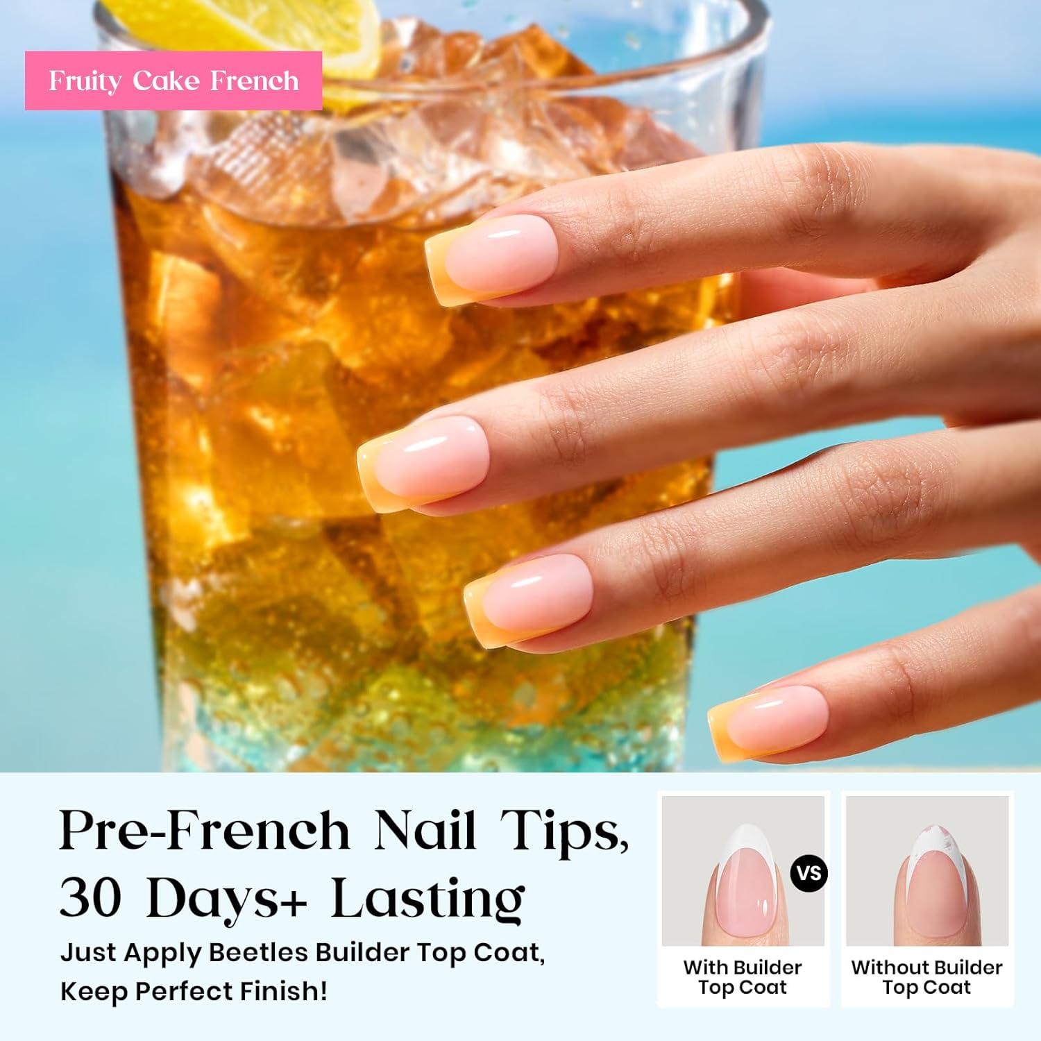 imageBeetles X Press French Tip Toenails  Charm French  Glossy Pink Short Square Press On Toe Nails  150 Pcs 15 Sizes Natural Salon Quality Gel Nail Tips For Women3S SquareFruity Cake French Kit
