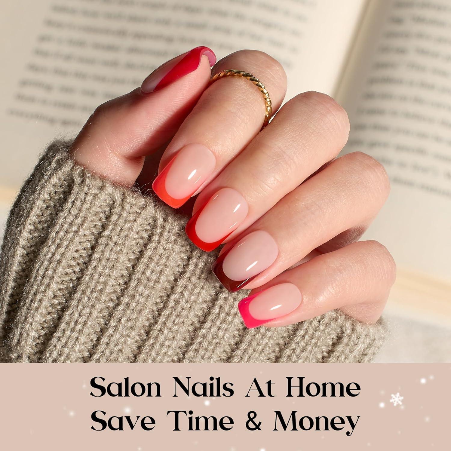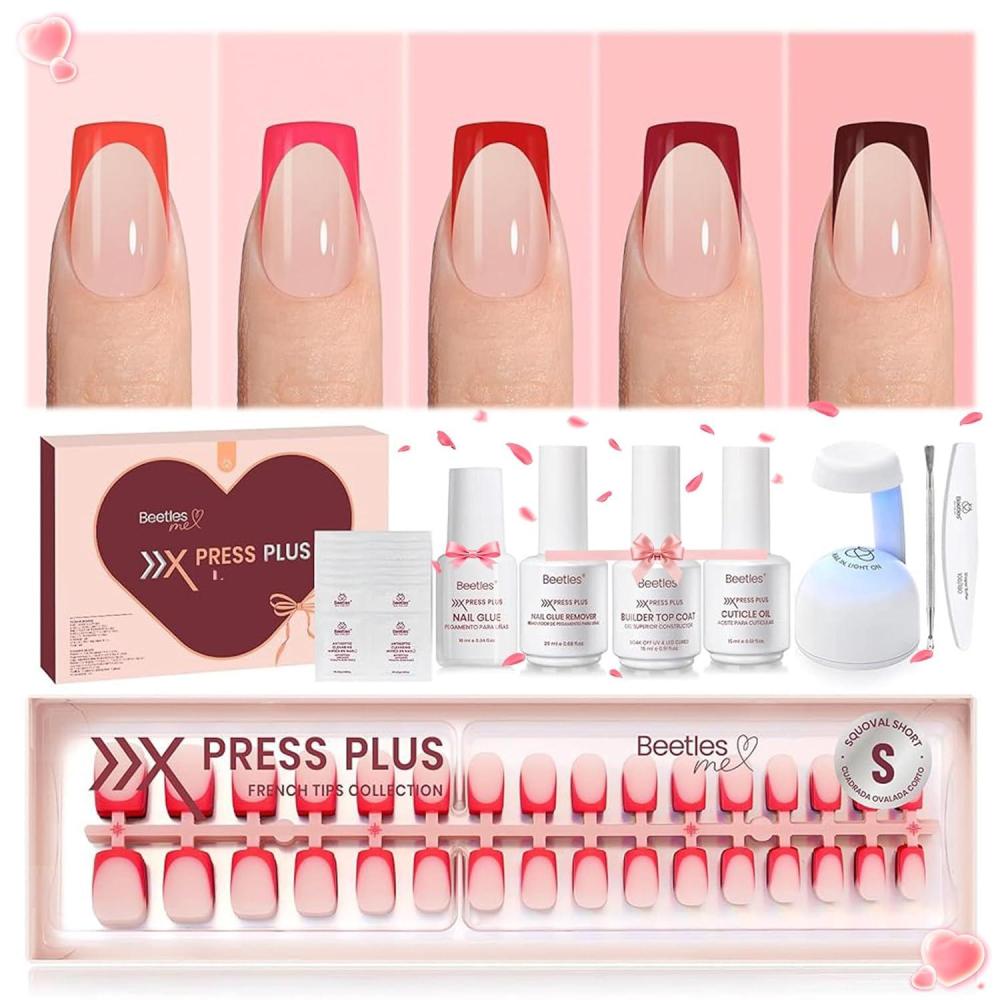 imageBeetles X Press French Tip Toenails  Charm French  Glossy Pink Short Square Press On Toe Nails  150 Pcs 15 Sizes Natural Salon Quality Gel Nail Tips For Women7S SquareRed French Kit