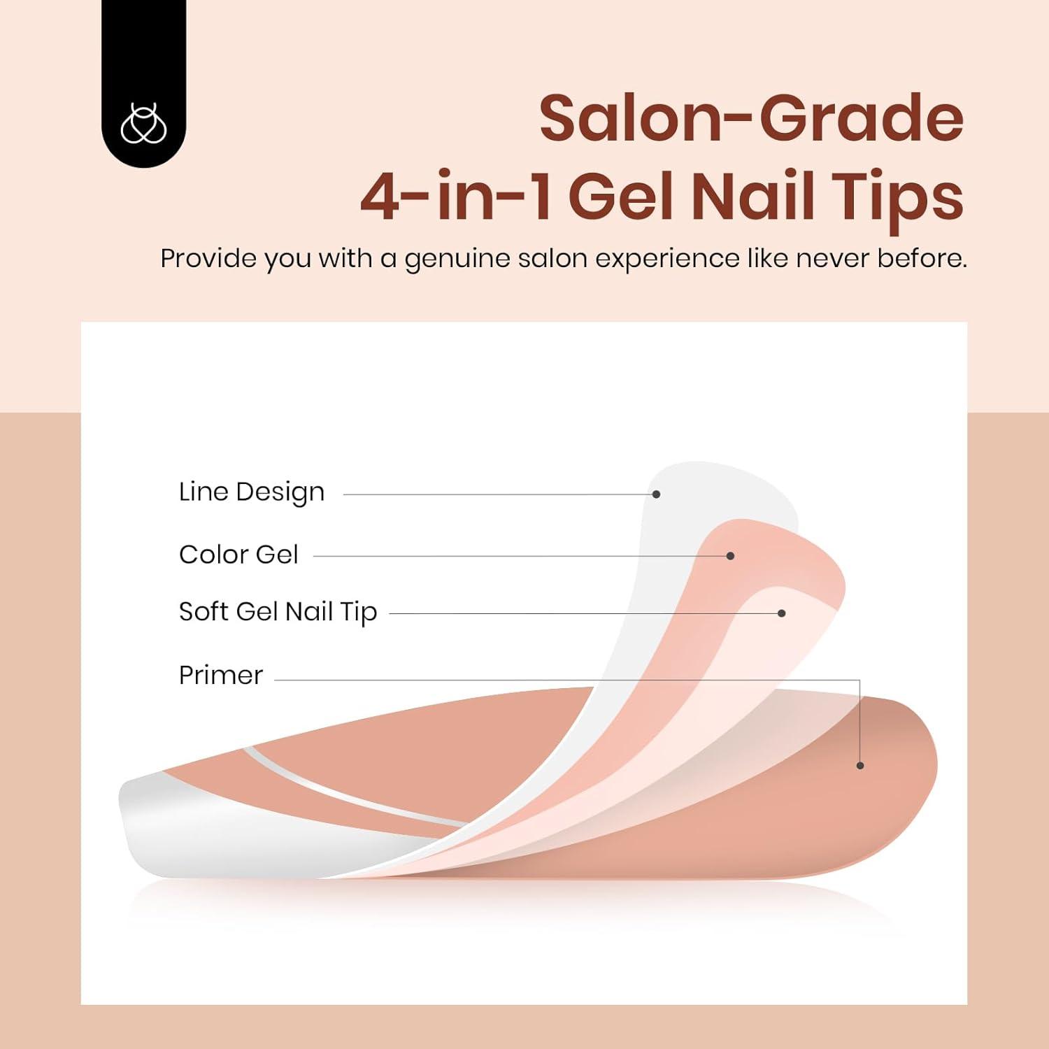 imageBeetles X Press Plus French Tips Press On Nails 16 Sizes 224 Pcs Pastel Short Almond Press On Nails Gel Nail Tips PreApplied Primer Base Coat Soak Off Uv Nail Extension Manicure Gift for WomenGL Square DesignBrown