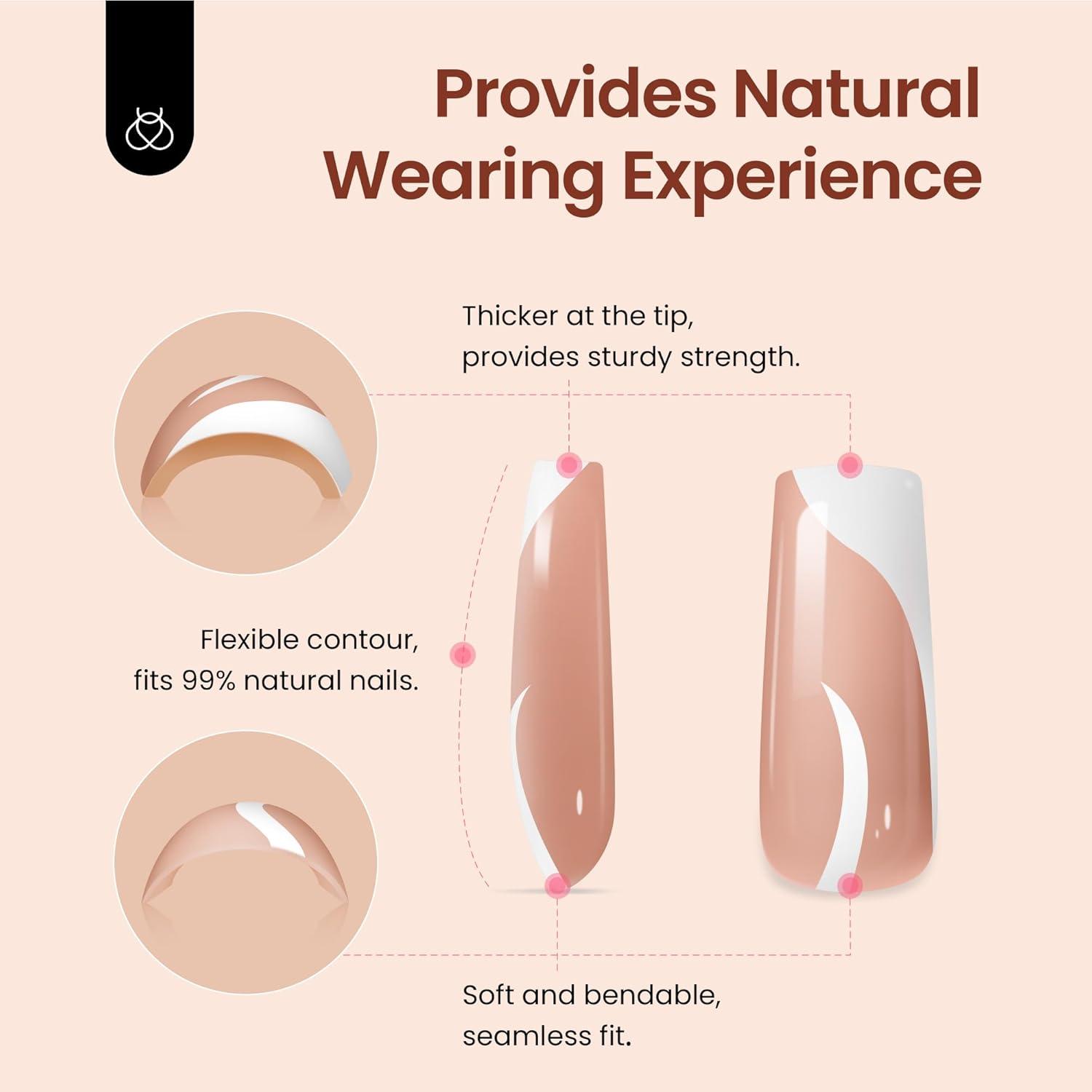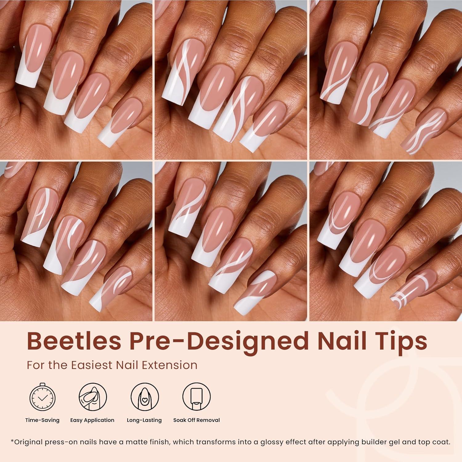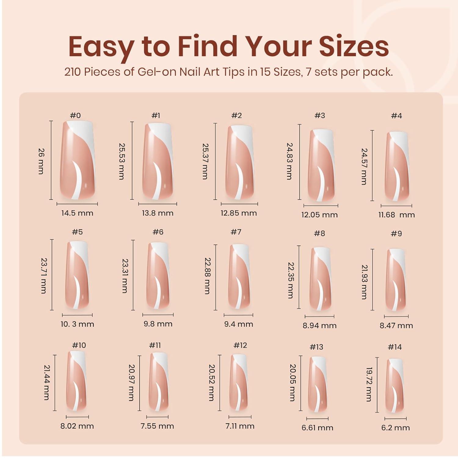Beetles X Press Plus French Tips Press On Nails, 16 Sizes 224 Pcs Pastel Short Almond Press On Nails Gel Nail Tips Pre-Applied Primer Base Coat Soak Off Uv Nail Extension Manicure Gift for Women(G-L Square Design-Brown)