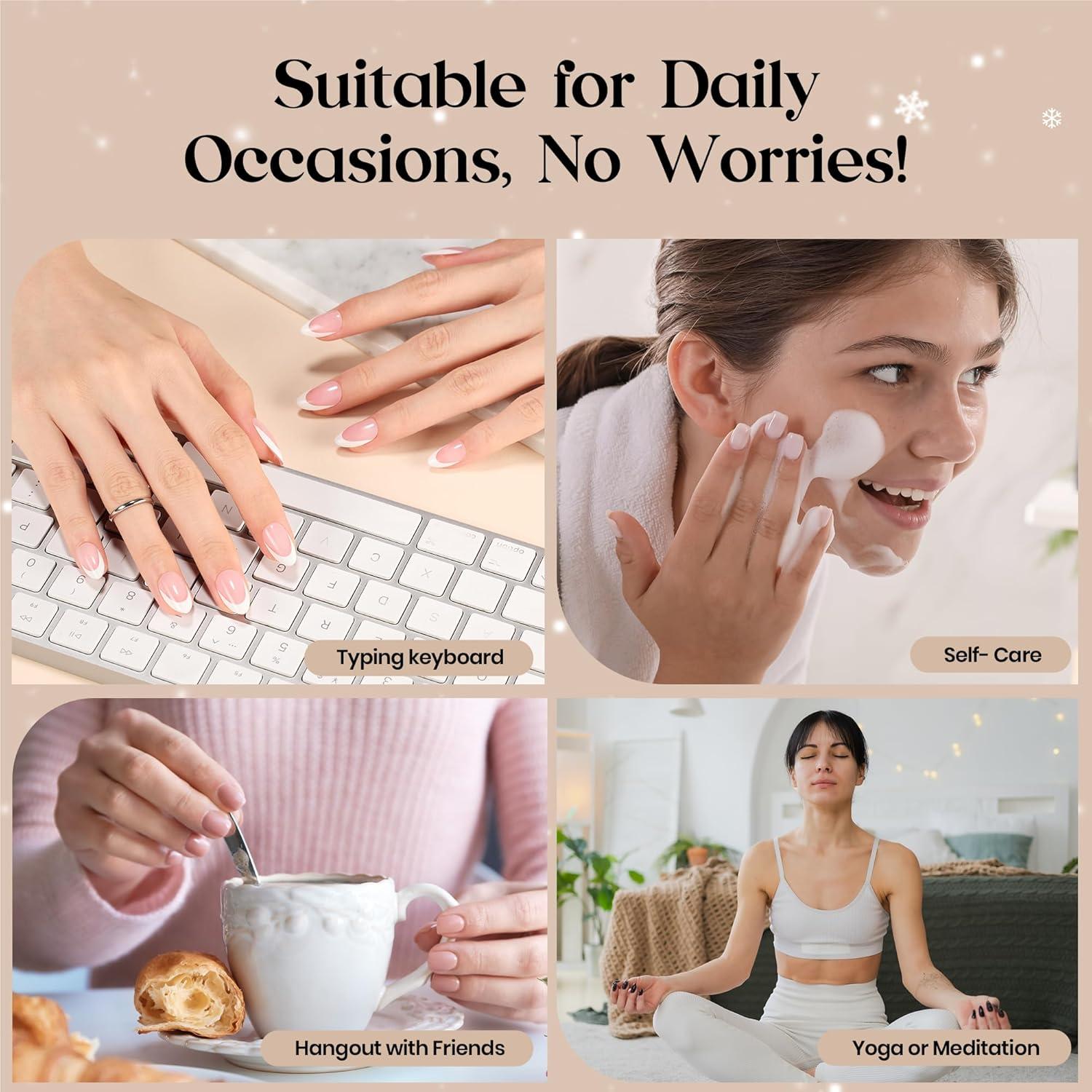 imageBeetles X Press Plus French Tips Press On Nails 16 Sizes 224 Pcs Pastel Short Almond Press On Nails Gel Nail Tips PreApplied Primer Base Coat Soak Off Uv Nail Extension Manicure Gift for WomenMS Almond  Rouge French Kit