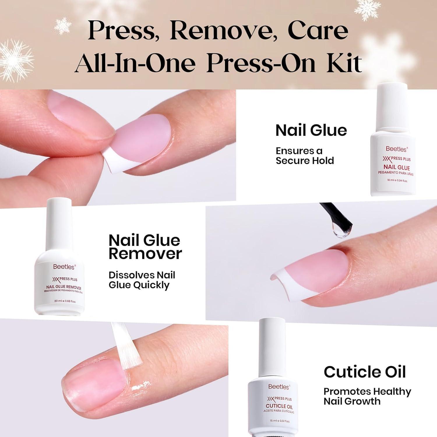 imageBeetles X Press Plus French Tips Press On Nails 16 Sizes 224 Pcs Pastel Short Almond Press On Nails Gel Nail Tips PreApplied Primer Base Coat Soak Off Uv Nail Extension Manicure Gift for WomenMM Almond  Fierce French Kit