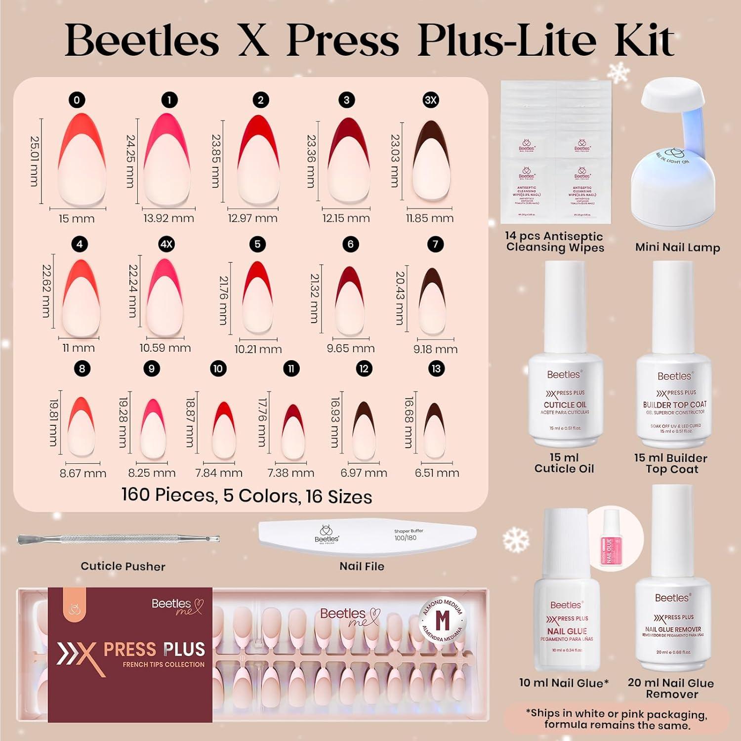 Beetles X Press Plus French Tips Press On Nails, 16 Sizes 224 Pcs Pastel Short Almond Press On Nails Gel Nail Tips Pre-Applied Primer Base Coat Soak Off Uv Nail Extension Manicure Gift for Women(M-S Almond – Rouge French Kit)