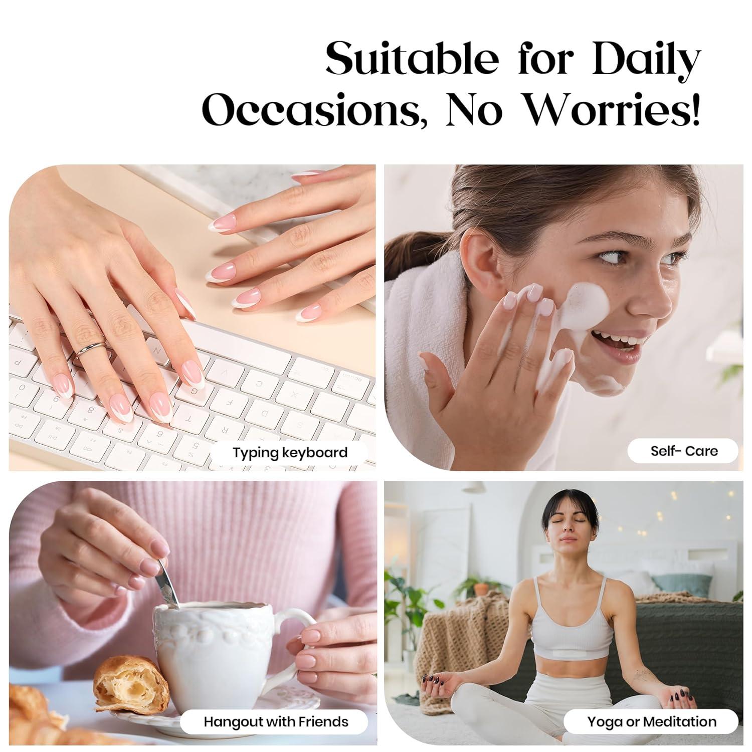 Beetles Yellow French Tips Press On Nails, 160 Pcs Pastel Spring Press On Nails Short Almond, Yellow Fake Nail Tips Soft Nail Gel False Nails Art DIY For Women(2-Long Square Pink)