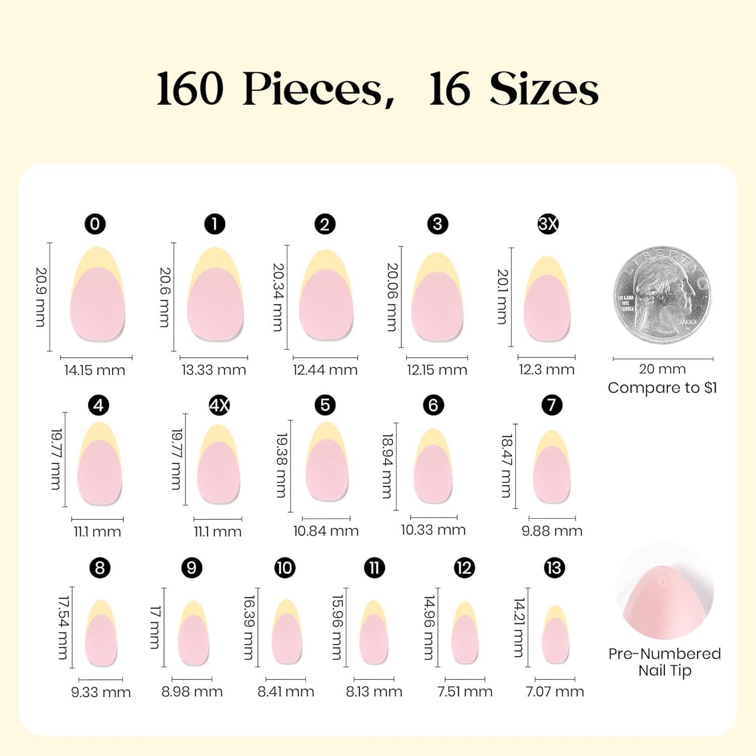 Beetles Yellow French Tips Press On Nails, 160 Pcs Pastel Spring Press On Nails Short Almond, Yellow Fake Nail Tips Soft Nail Gel False Nails Art DIY For Women(5-S Almond Yellow French)