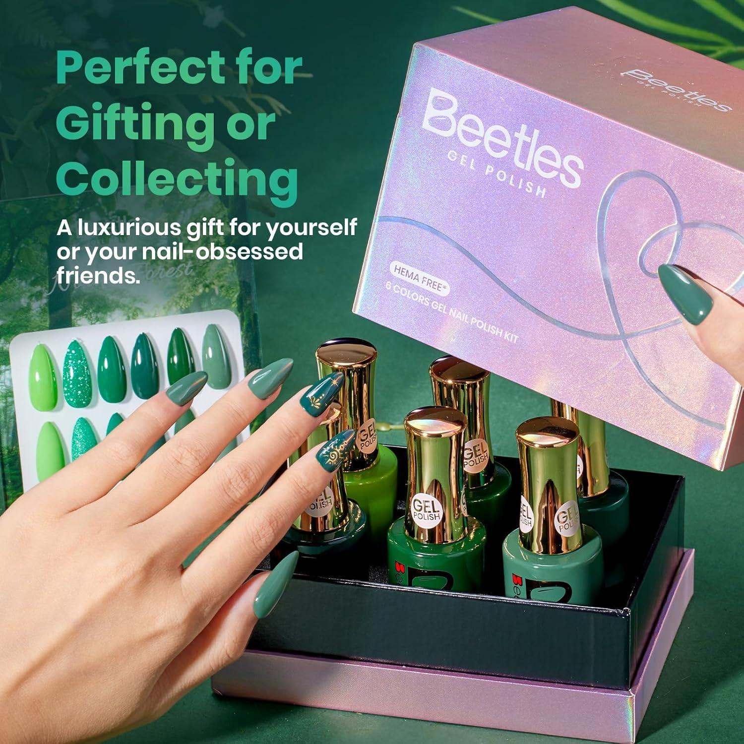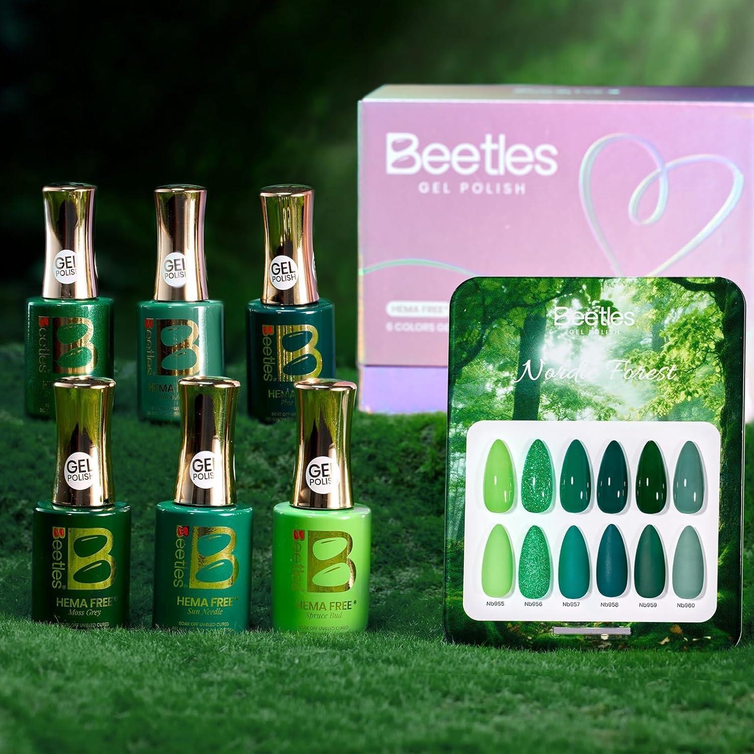 Beetles Yellow Gel Nail Polish Set – Sunny Pantry with Color Card, 6Colors HEMA FREE Yellow Gel Nail Polish Set 15ML/0.51FlOz, Same Color Bottle, Long-Lasting Soak Off UV Lamp Summer Spring Nails Art(Nordic Forest)