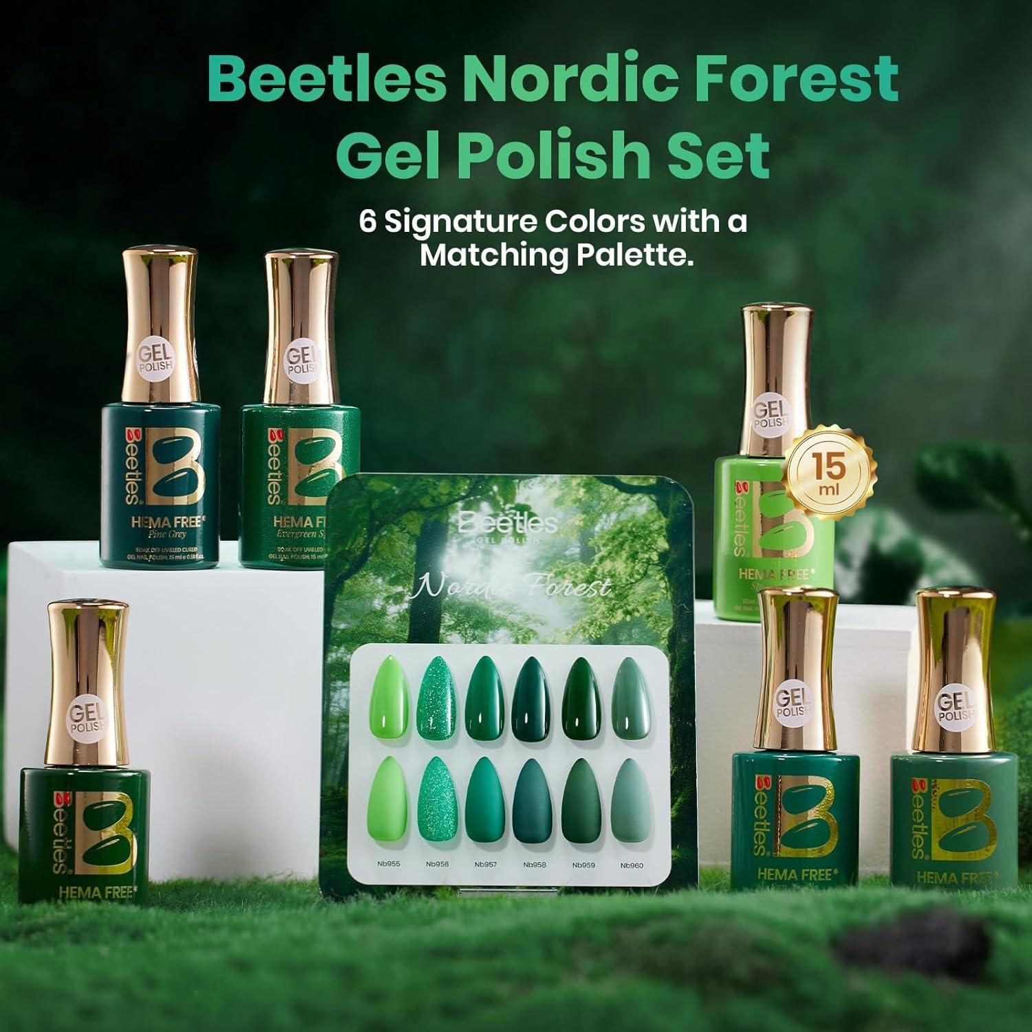 Beetles Yellow Gel Nail Polish Set - Sunny Pantry with Color Card, 6Colors HEMA FREE Yellow Gel Nail Polish Set 15ML/0.51FlOz, Same Color Bottle, Long-Lasting Soak Off UV Lamp Summer Spring Nails Art(Nordic Forest)